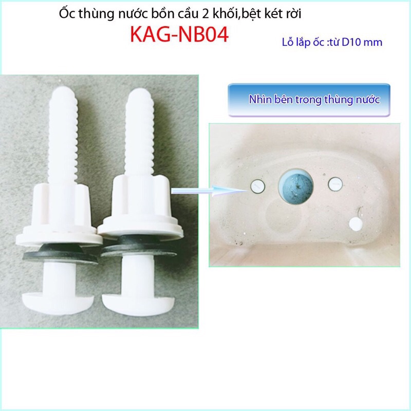 Ốc thùng nước bồn cầu, ốc két nước bệt 2 khối.Dùng để lắp két nước với thân bàn cầu 2 khối, đơn giá trên cho 1 cặp ( 2 con ốc)