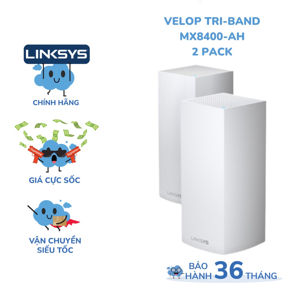 Giới thiệu (2 PACK) Bộ phát wifi LINKSYS VELOP MX8400 chuẩn AX tốc độ 4200mbps tri-band interlligent mesh wifi 6 MU-MIMO system