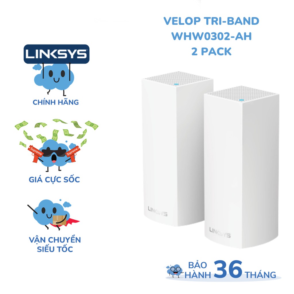(2 PACK) Bộ phát wifi LINKSYS VELOP WHW0302 chuẩn AC tốc độ 4400mbps Tri-band intelligent mesh wifi 5 MU-MIMO system