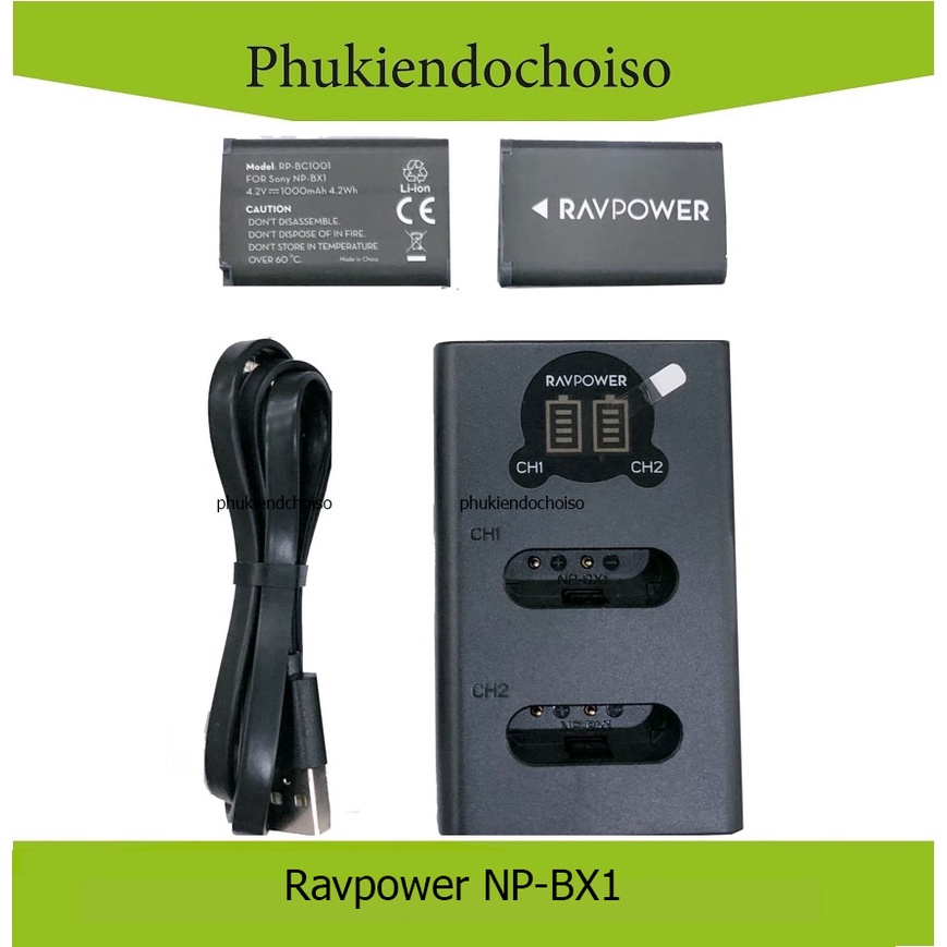 Bộ 2 pin 1 sạc đôi RavPower for Sony NP-BX1