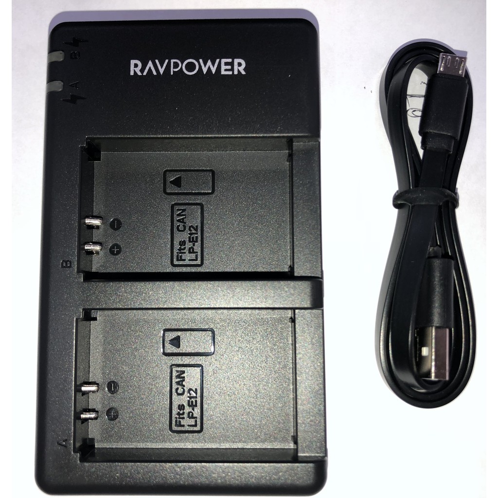 Bộ 2 pin 1 sạc máy ảnh RavPower cho Canon LP-E12