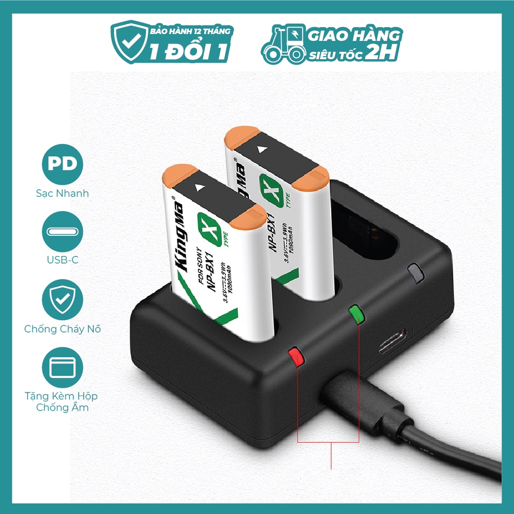 Bộ 2 Pin+Dock sạc ba Kingma cho Sony NP-BX1 Kèm hộp chống ẩm