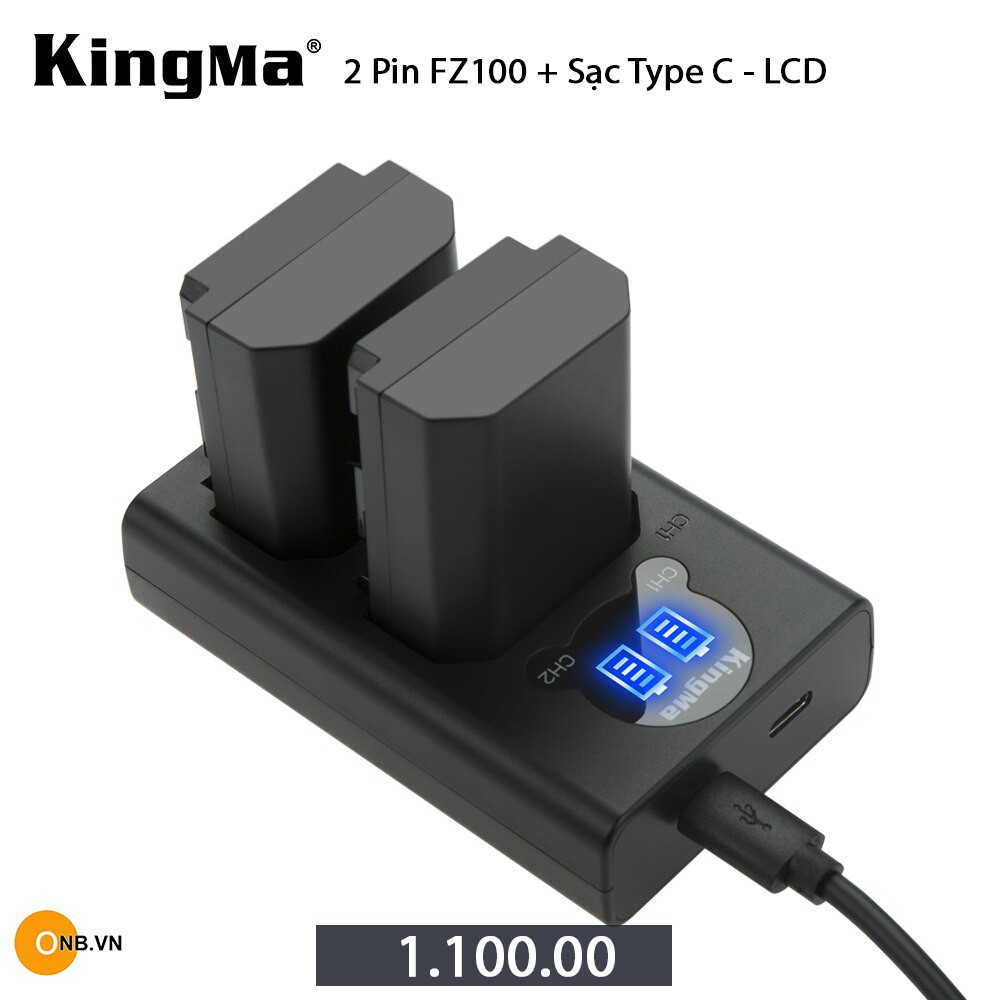 Bộ 2 Pin Kingma FZ100 , 2 hộp nhựa, kèm sạc đôi type-c có màn hình LCD hiển thị mức độ pin cho Sony Alpha A7III, A7R3, A7R4, A9 mẫu mới 2020 !Thiết kế đẹp, gọn , mang đi dễ dàng. Sạc kiểu mới sạc nhanh hơn.