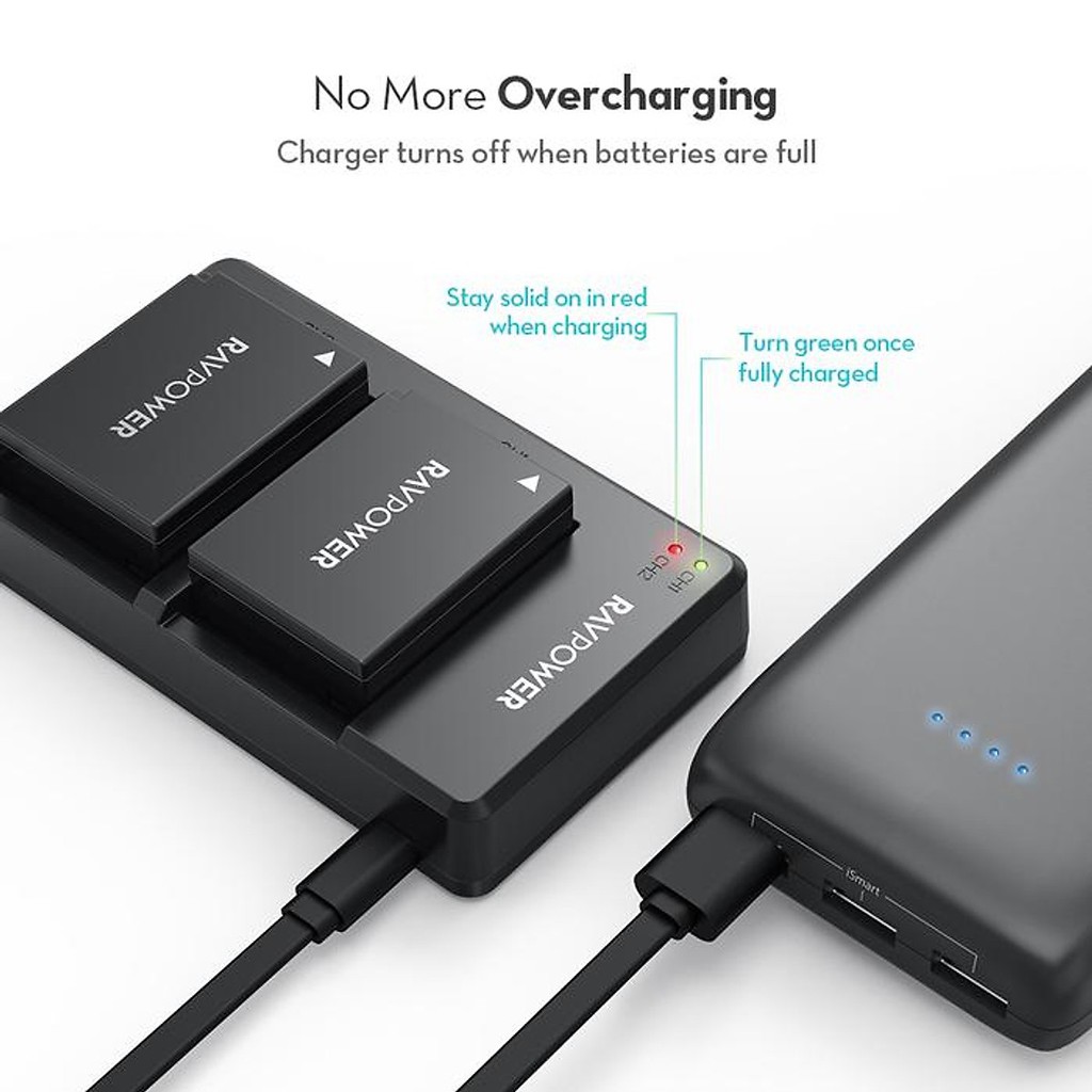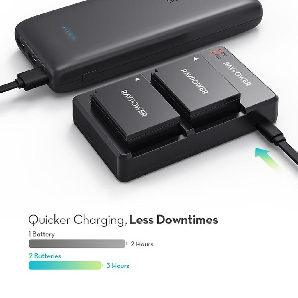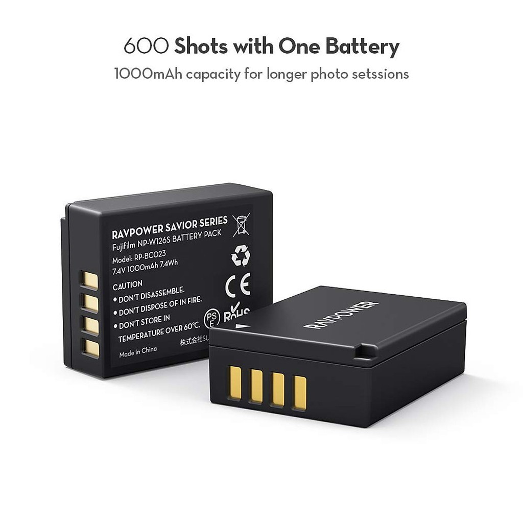 Bộ 2 Pin RAVPower Fujifilm NP-W126S + Sạc Đôi Cho Fujifilm X-T20 X-T10 X-T100 X100F X-H1 X-T3 X-T2 X-T1 X-A5 X-A7