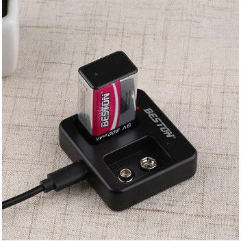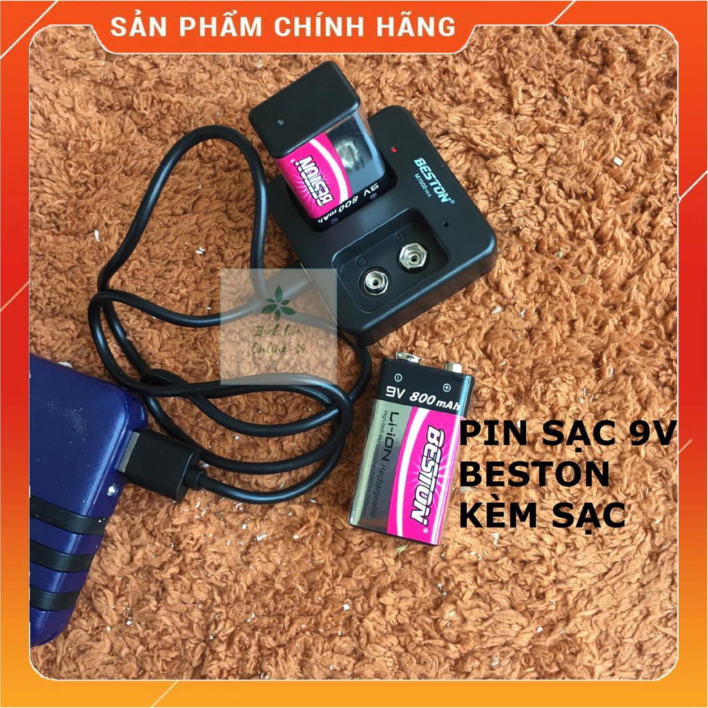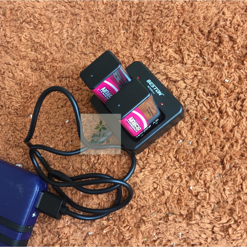 Bộ 2 pin sạc 9V 800mAh Beston Chính hãng Kèm sạc M7005 Pin vuông Li-Ion cao cấp Sạc lại nhiều lần