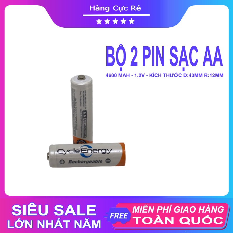 Bộ 2 Pin sạc AA (2A) loại tốt Ni-MH 4600mAh 1.2V Freeship Pin tiểu Cycle Energy Rechargeable (2 viên) - Shop Hàng Cực Rẻ