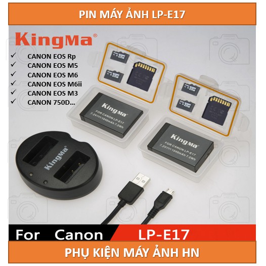 Bộ 2 Pin Sạc Đôi Canon LP-E17 - Kingma Chính Hãng Dùng cho máy ảnh canon EOS Rp/ EOS M3,M5,M6,750D,760D,77D,800D và 200D