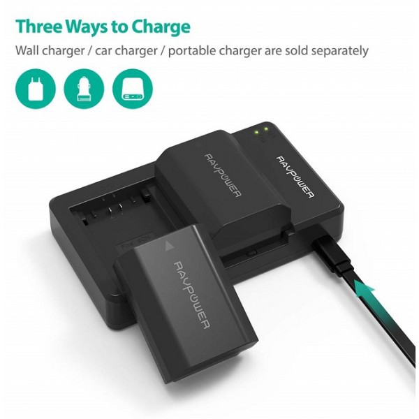 Bộ 2 Pin + Sạc đôi RAVPower FZ-100 cho Sony A7 III, A7R III, A7R IV, A9, A6600