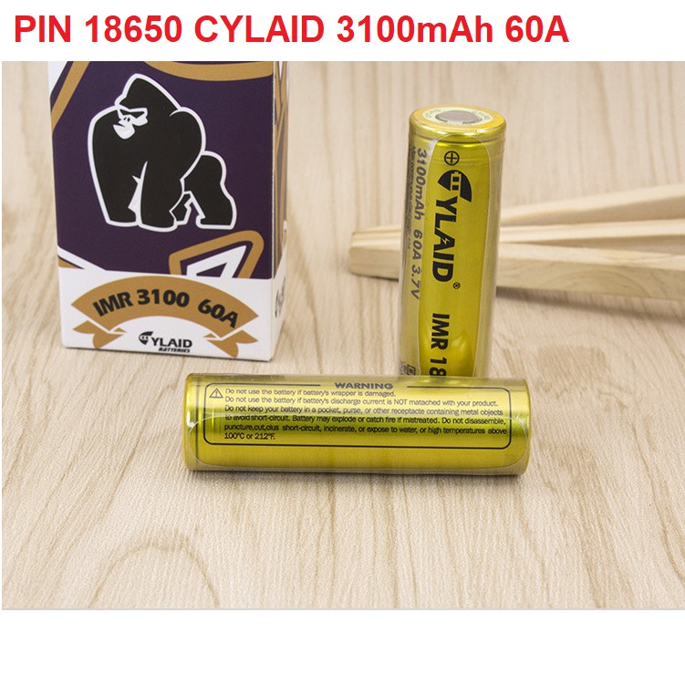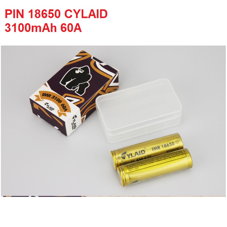 Bộ 2 pin sạc Lithium 18650 CYLAID dung lượng cao 3100mah 60A