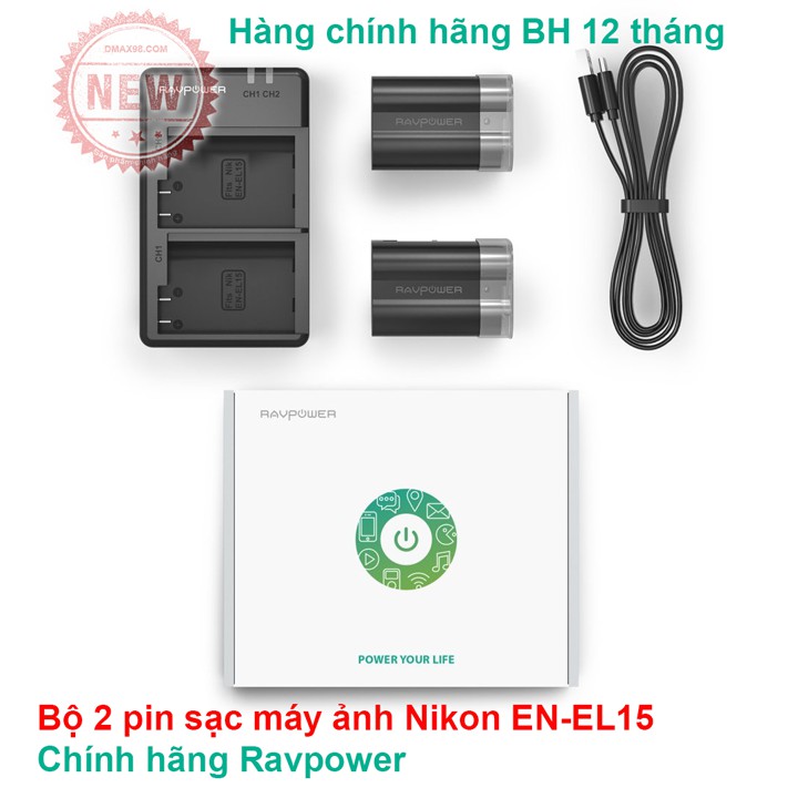 Bộ 2 pin sạc máy ảnh Nikon EN-EL15 chính hãng Ravpower Mỹ