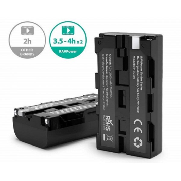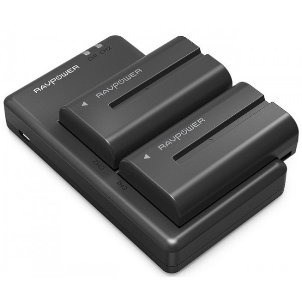 Bộ 2 pin + sạc RAVPower NP-F550 cho máy quay Sony, đèn Led