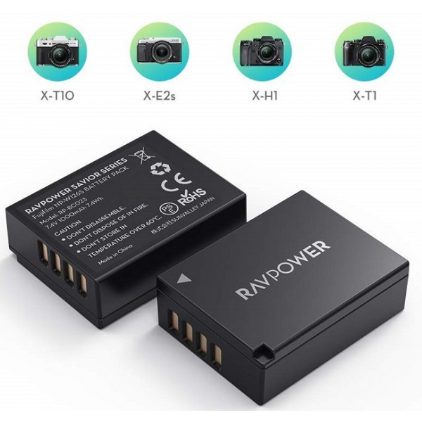 Bộ 2 pin + sạc RAVPower NP-W126S for Fujifilm FinePix, X-A5, X-H1, X-A10, X100F, X-T10, X-T20, X-Pro1, X-Pro2, 30EXR, HS