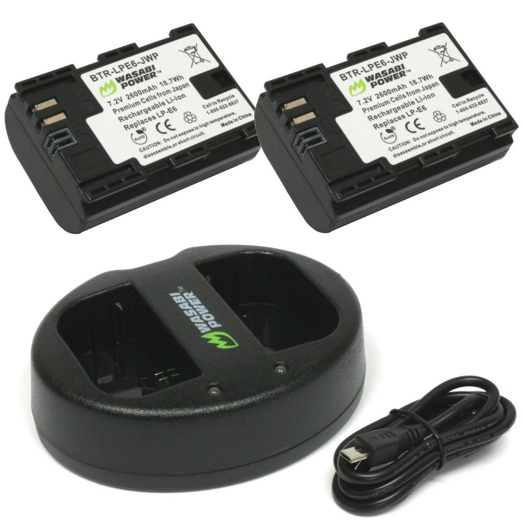 Bộ 2 pin + sạc Wasabi LP-E6 cho Canon 60D,70D, 77D, 80D, 6D, 7D, 7D Mark II ,5D Mark II, 5D Mark III, 5D IV, 5Ds, 5Dsr