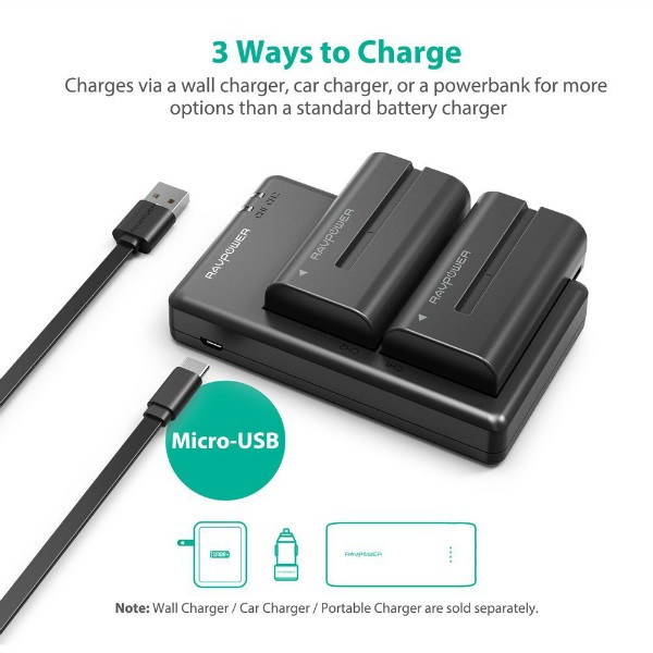 Giới thiệu Bộ 2 pin và sạc đôi pin máy quay SONY NP-F550 RAVPOWER RP-BC006 chính hãng
