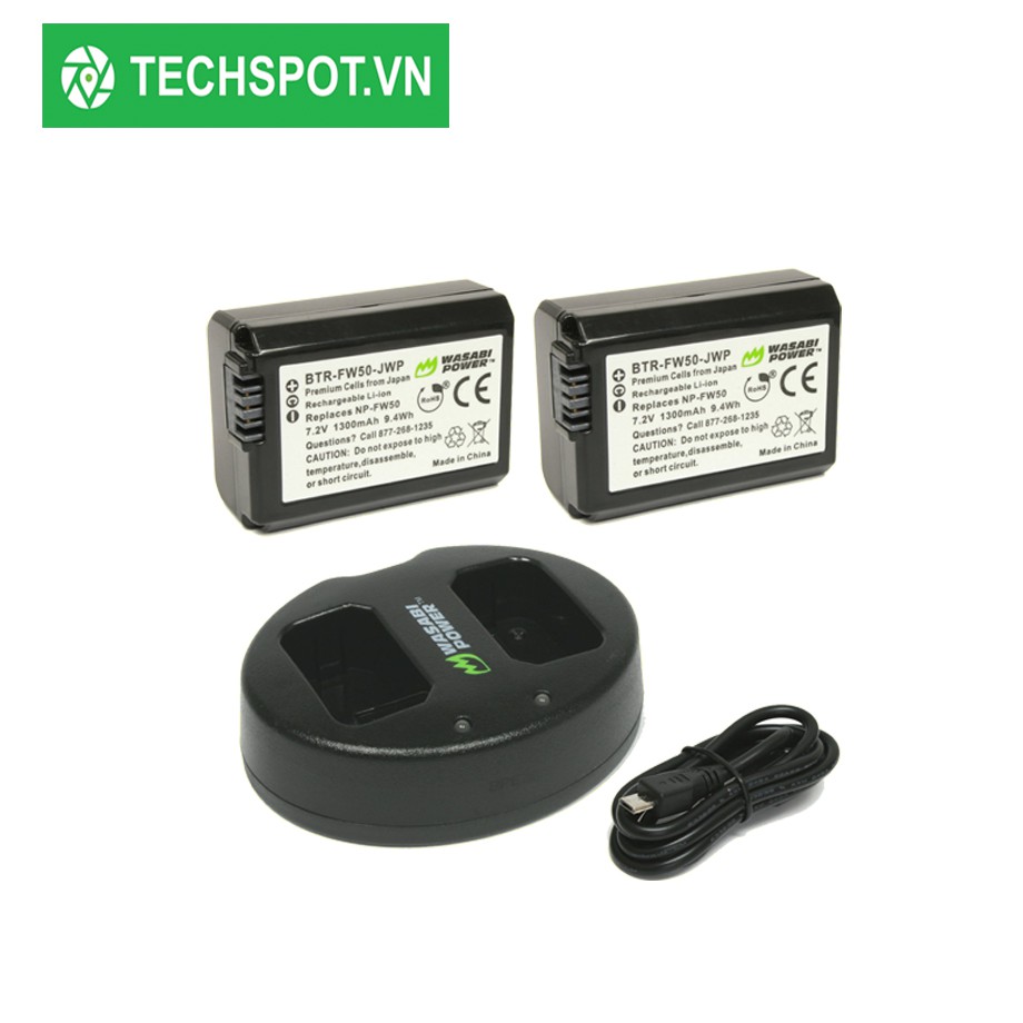 Bộ 2 Pin và Sạc Đôi WASABI FW50 cho Sony A7 A6000 A6300 A6500 - TECHSPOTVN
