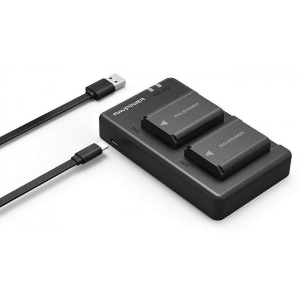 Bộ 2 pin và sạc RAVPower FW50 cho Sony NEX 3/5/7, SLT-A, DSC-RX10, Alpha A6000, A6300, A6400, A6500, A7, A7 II, A7R, A7R