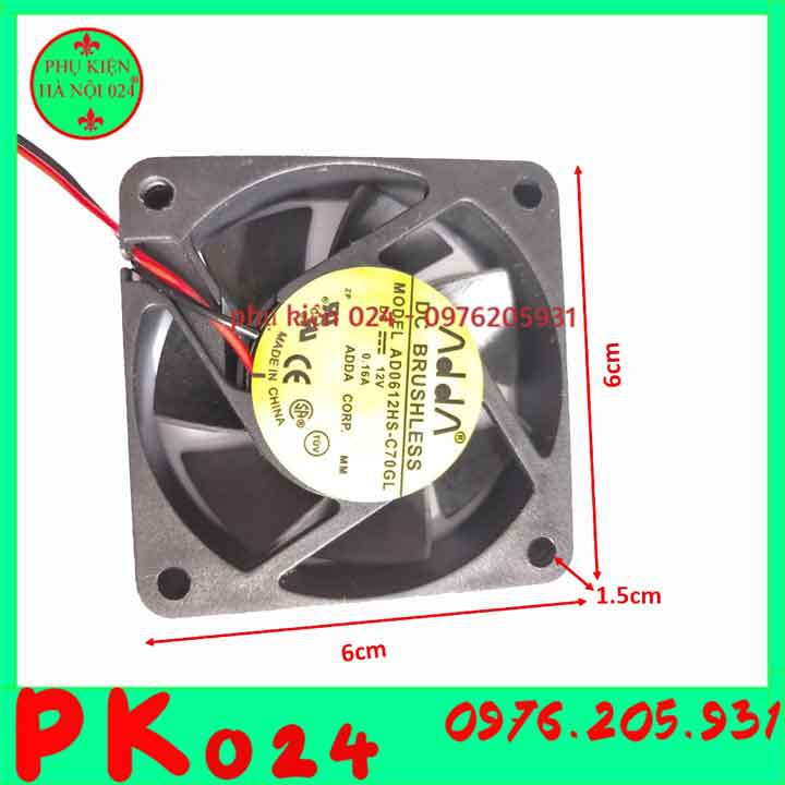 Bộ 2 Quạt Tản Nhiệt Brushless 12V Tốc Độ Cao 6x6x1.5cm 0.16A