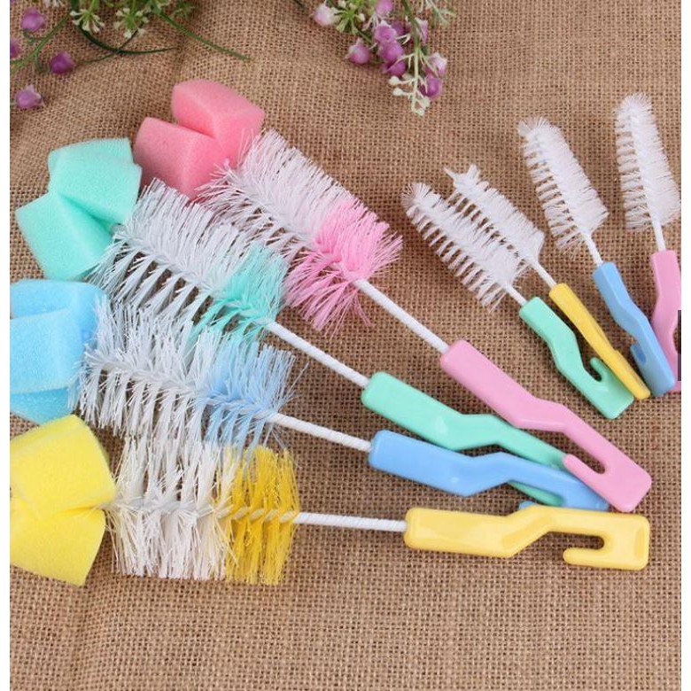 Bộ gồm 2 chổi cọ: 1 chổi cọ bình sữa quay 360 độ, 1 chổi cọ núm ti phù hợp với các loại bình sữa và núm ti kích cỡ khác nhau.