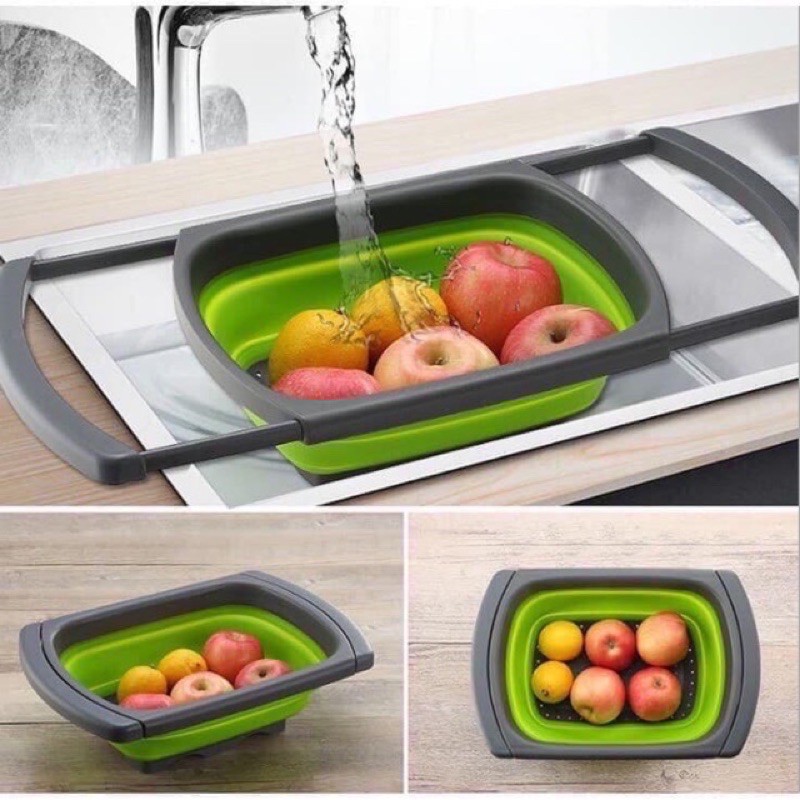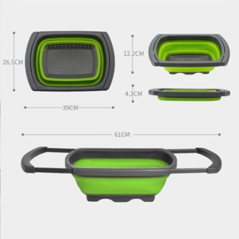 Bộ 2 rổ Silicon gấp gọn thông minh PR-JO2 (quà tặng SHARP)Với thiết kế thông minh, rổ lớn có thể kéo dài tay cầm 2 bên để gác trên thành bồn rửa chén giúp việc rửa thực phẩm được dễ dàng hơn.