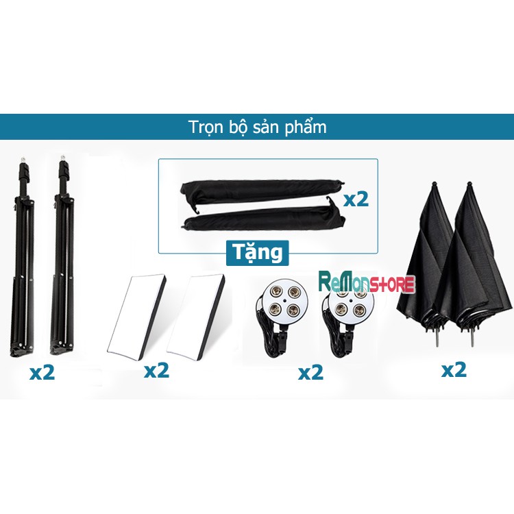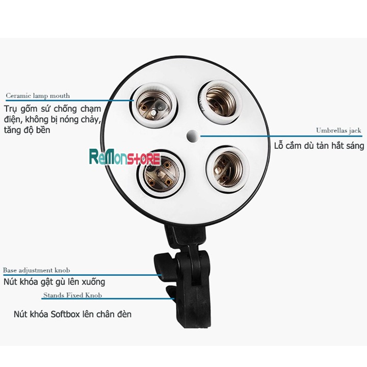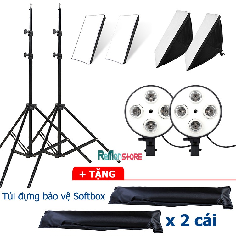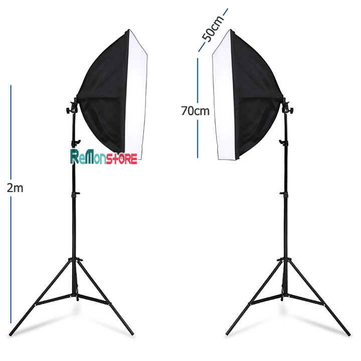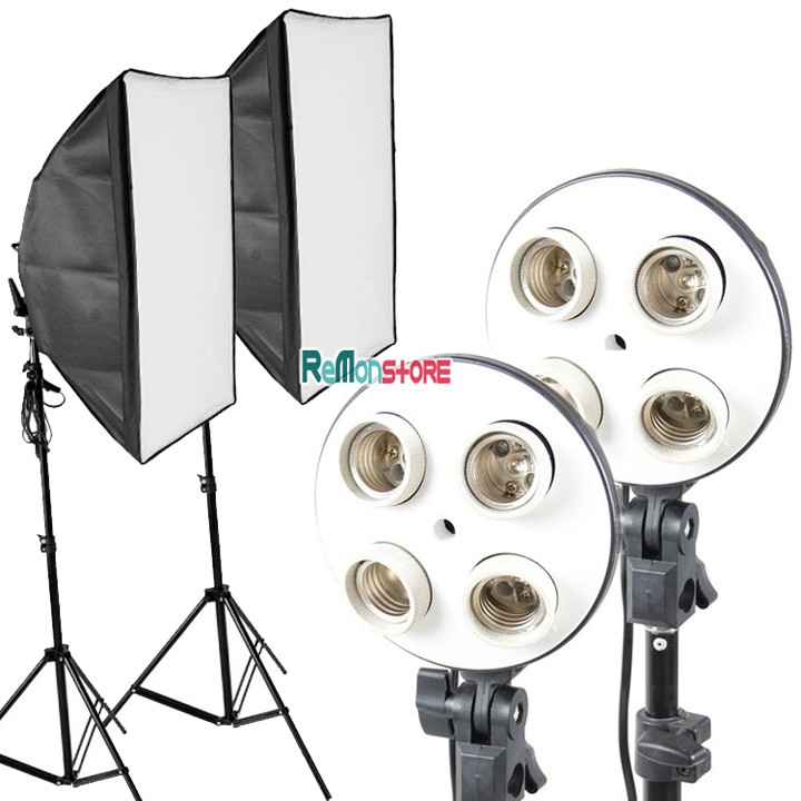 2 Softbox đuôi Sứ 4 chuôi 50x70cm - 2 Chân đèn 2m không bao gồm đèn******Cam kết bảo hành chỉ có tại ReMonStore