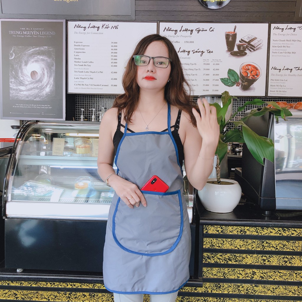 Nhà cửa & Đời sống > Dụng cụ nhà bếp > Tạp dề & gắng tay nấu nướng || 2 tạp dề nấu ăn, kiểu tạp dề có túi đựng điện thoại, kích thước freesize, vải dù ko thấm nước (2 cái) (Nhiều mẫu mã)Còn hàng