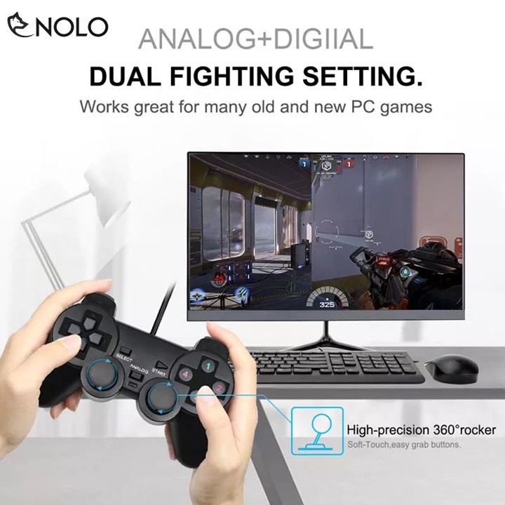 Bộ 2 Tay Cầm Chơi Game Joystick Có Dây Model TGD01 Dùng Chung 1 Đầu Ra Cổng USB Tương Thích Tốt Trên Win 10