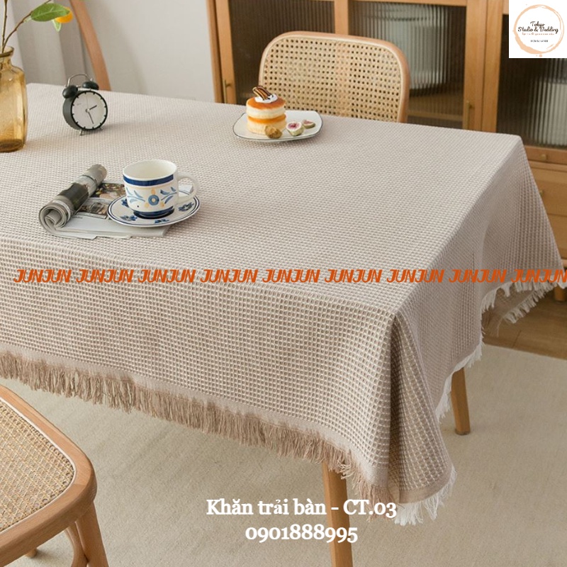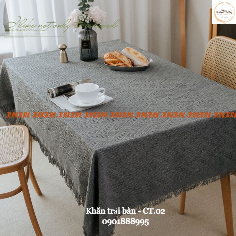 -Khăn trải bàn vải sợi dòng cao cấp cotton pha lient phong cách Bắc Âu