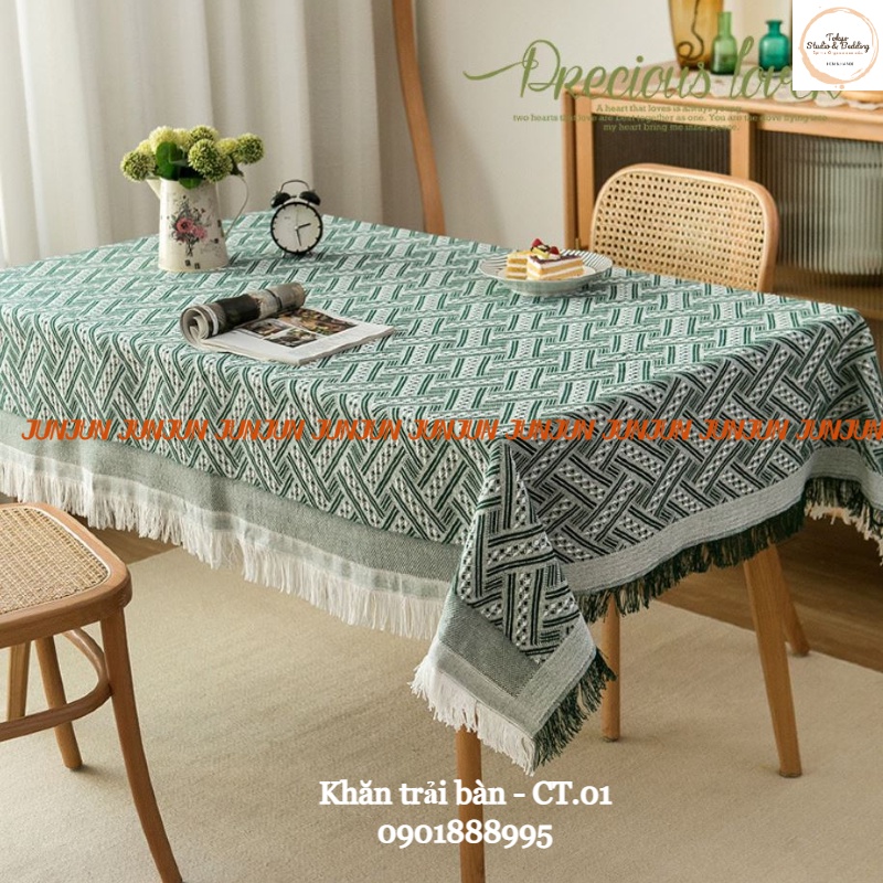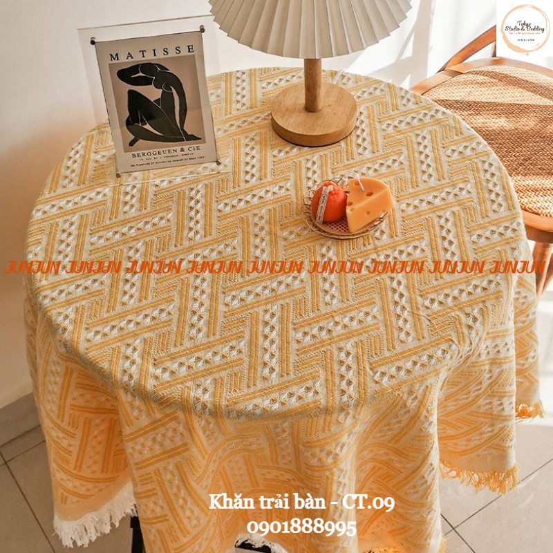 THÔNG TIN SẢN PHẨM: Tổng hợp Khăn trải bàn hình chữ nhật/bàn tròn cotton và lanh Morandi họa tiết thổ cẩm phong cách Bắc Âu