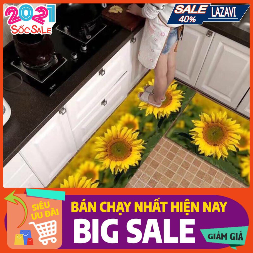 Bộ 2 thảm bếp 3D,chống trơn trượt (40*60 + 40*120 cm)-hoa hướng dương🍀🍀2 THẢM BẾP 3D CHỐNG TRƠN TRƯỢT LOẠI CAO CẤP