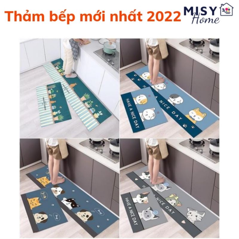 Bộ 2 thảm bếp chùi lau chân nhà tắm chống trơn trượt lót sàn cửa ra vào thấm hút nước 3d trải phòng ngủ trang trí decor