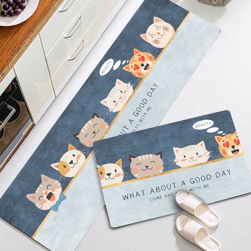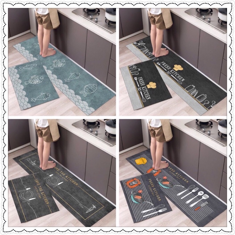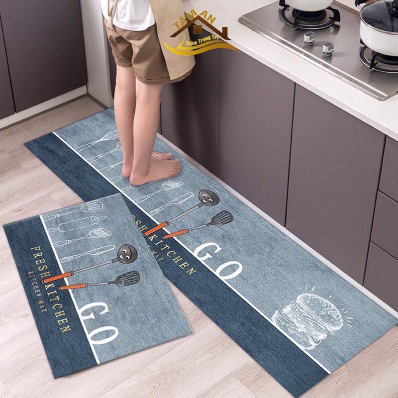 Bộ 2 thảm bếp lau chân cao cấp chống trơn trượt thấm nước tốt