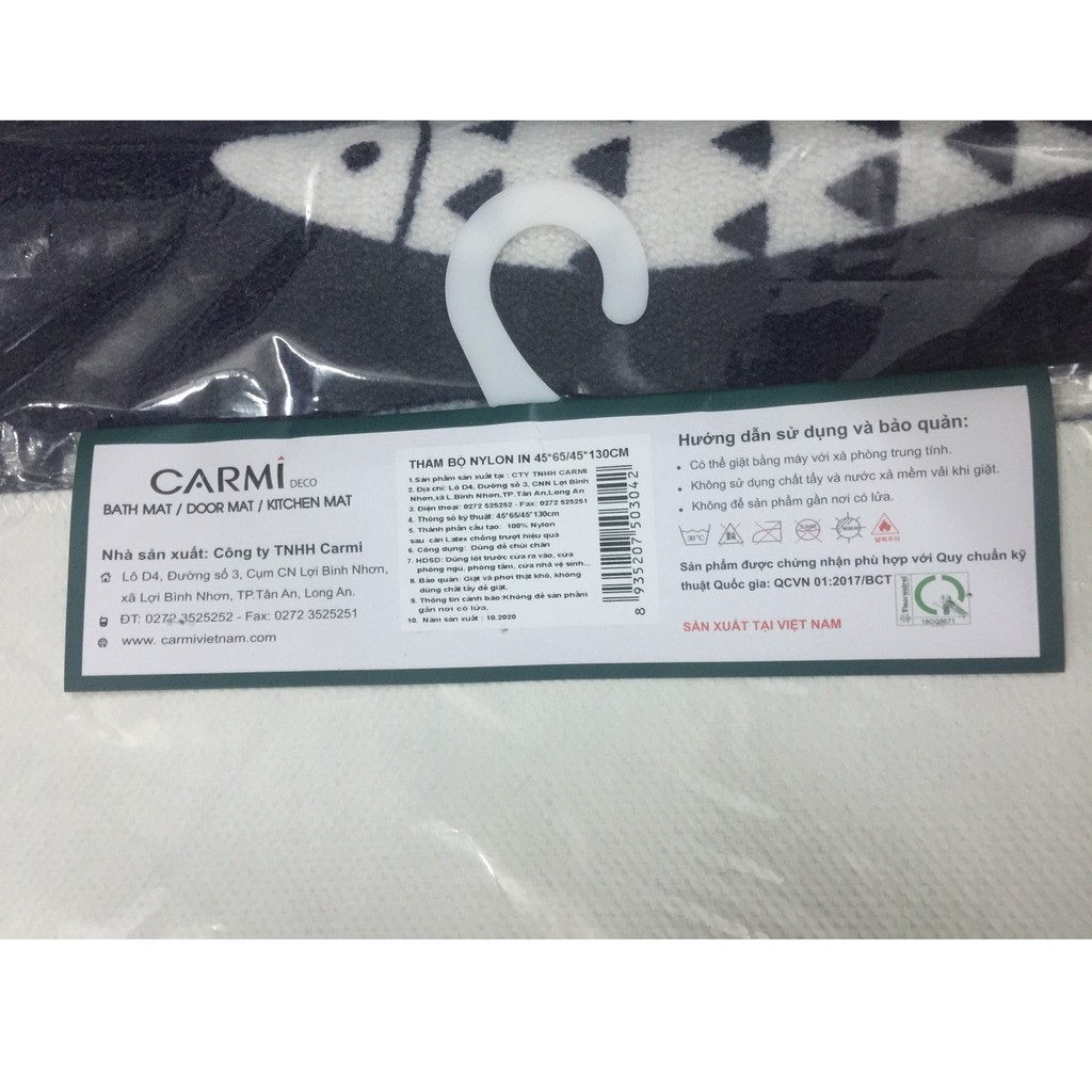 Bộ 2 Thảm Nhà Bếp Carmi Hình Cá 130x45 và 45x65 cmThảm CARMI được sản xuất theo công nghệ và dây truyền của Hàn Quốc