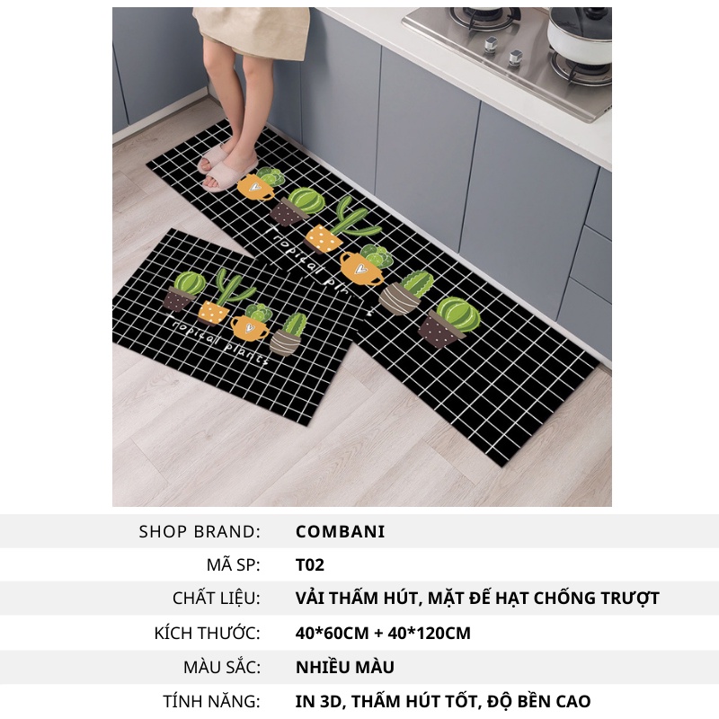 Bộ 2 Thảm Nhà Bếp 3D Cao Cấp Mặt Đế Chống Trơn Trượt COMBANI (1 thảm 40*60cm & 1 thảm 40*120cm)Thông tin sản phẩm: