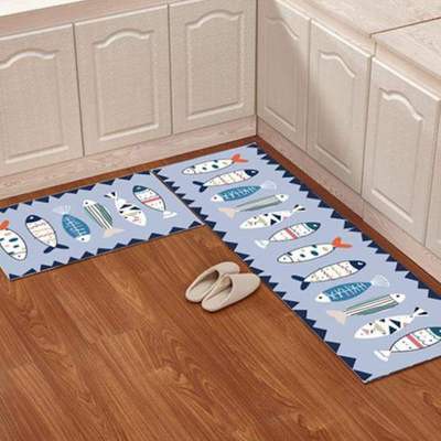 Bộ 2 thảm trải sàn nhà bếp có lớp chống trợt in hình 3D mẫu mới 2020