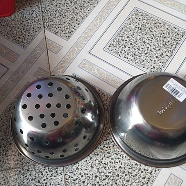 Bộ 2 thau rổ inox 201Kích thước : miệng thau 18 cm