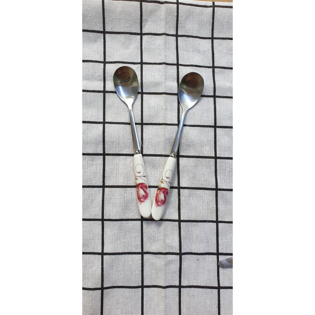 Bộ 2 thìa cafe inox cán sứ sang trọng (ảnh thật)