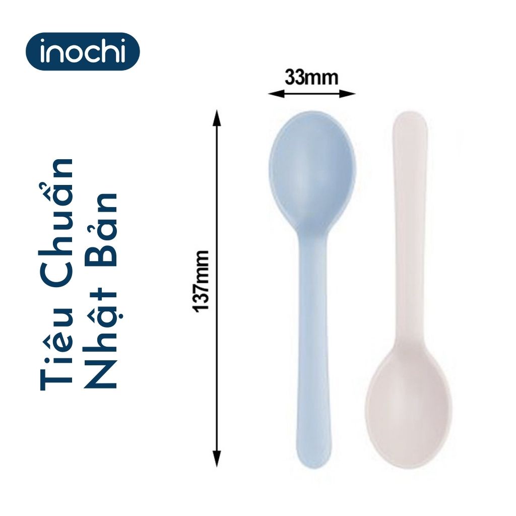 Bộ 2 Thìa Nhựa Ăn Dặm INOCHI Amori Loại Dài, Thiết Kế Muỗng Thông Minh Cho Bé Tập Tự Xúc Ăn