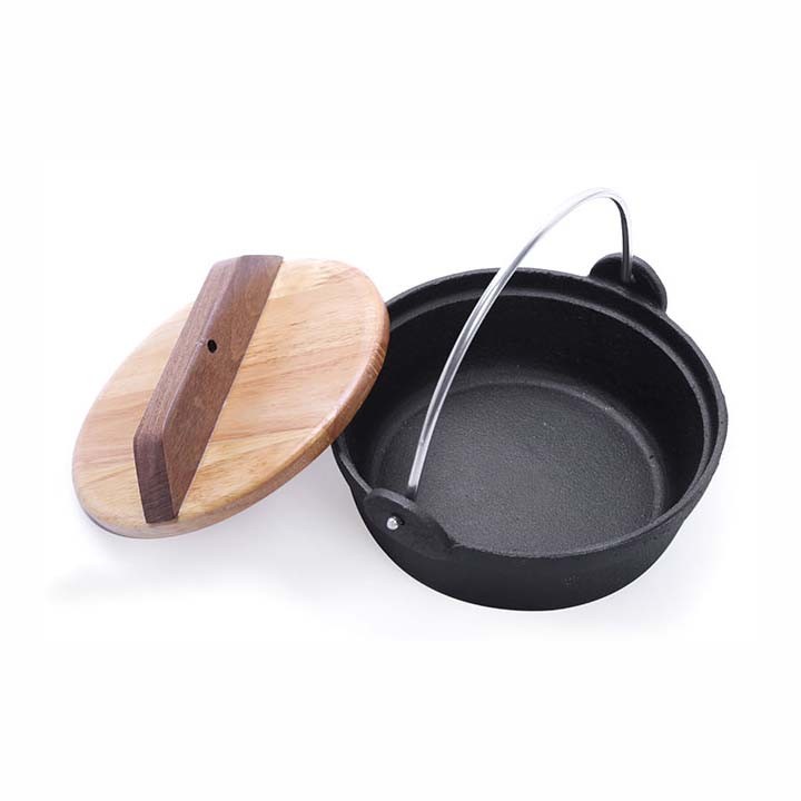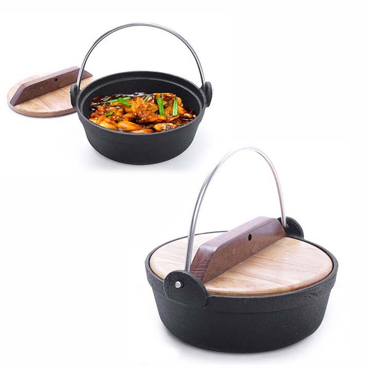 Chất liệu: gang đúc chống dính - Nắp gỗ