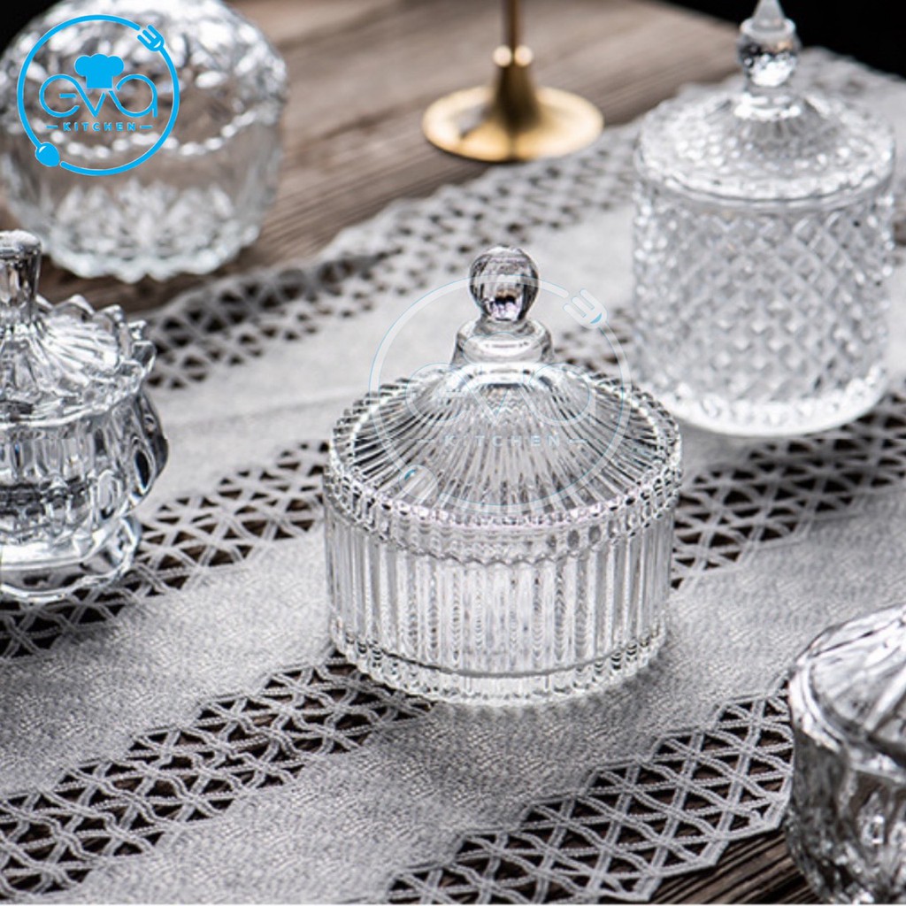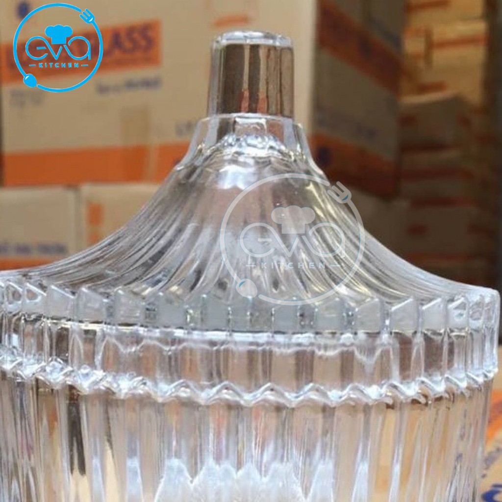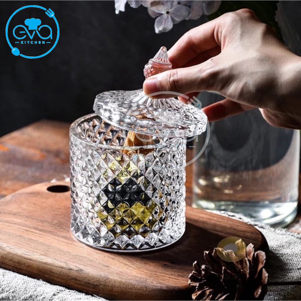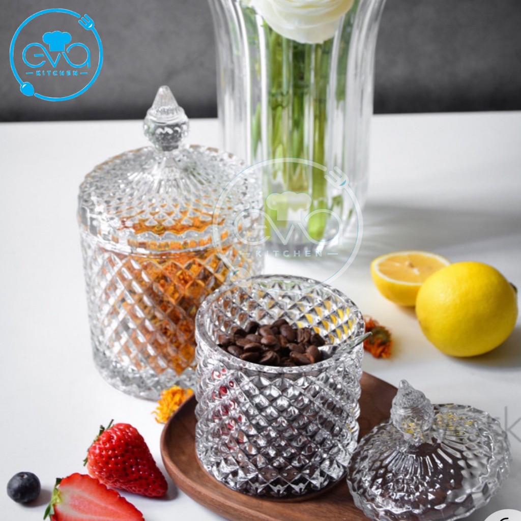 Bộ 2 Thố Mứt Thuỷ Tinh Pha Lê Kim Cương Và Kẻ sọc Sang Trọng / Thố Mứt Tết VT và Thố Bi Deli TG1030-3.5 M3294
