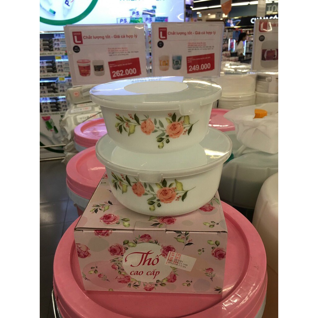 Bộ 2 thố sứ thủy tinh tráng men có nắp đậy