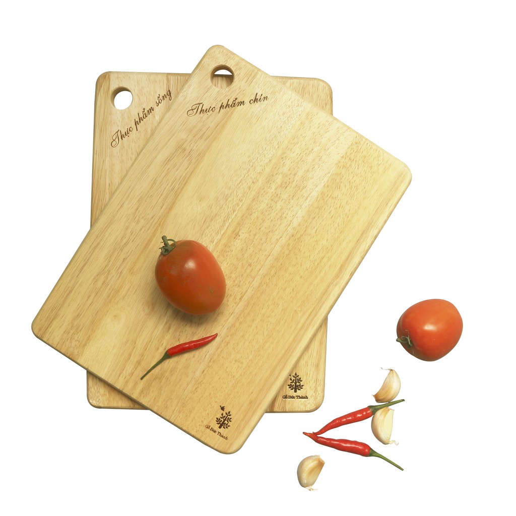 Bộ 2 Thớt Gỗ Cao Su Tự Nhiên Đức Thành Dùng Cho Thực Phẩm Sống Và Thực Phẩm Chín - Dụng Cụ Nhà Bếp Cao Cấp