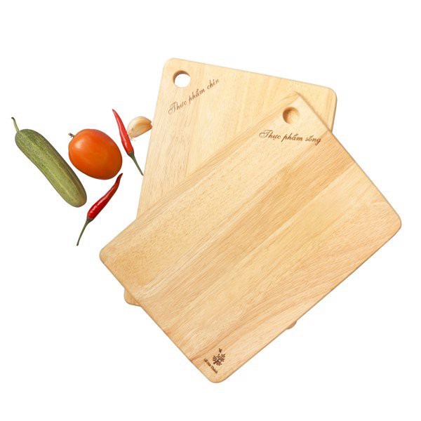 Bộ 2 thớt sống, chín - Kích thước 31 x 22 x 1.5 cm- Gỗ Cao Su Bền Đẹp - Gỗ Đức Thành 05331