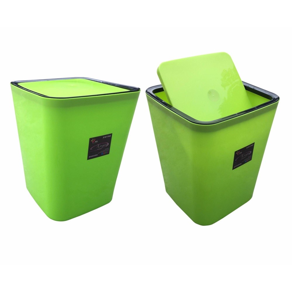 Bộ 2 Thùng rác gia đình nhựa bóng cao cấp nắp bập bênh bằng Xanh Lá TI783