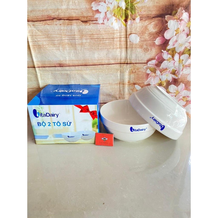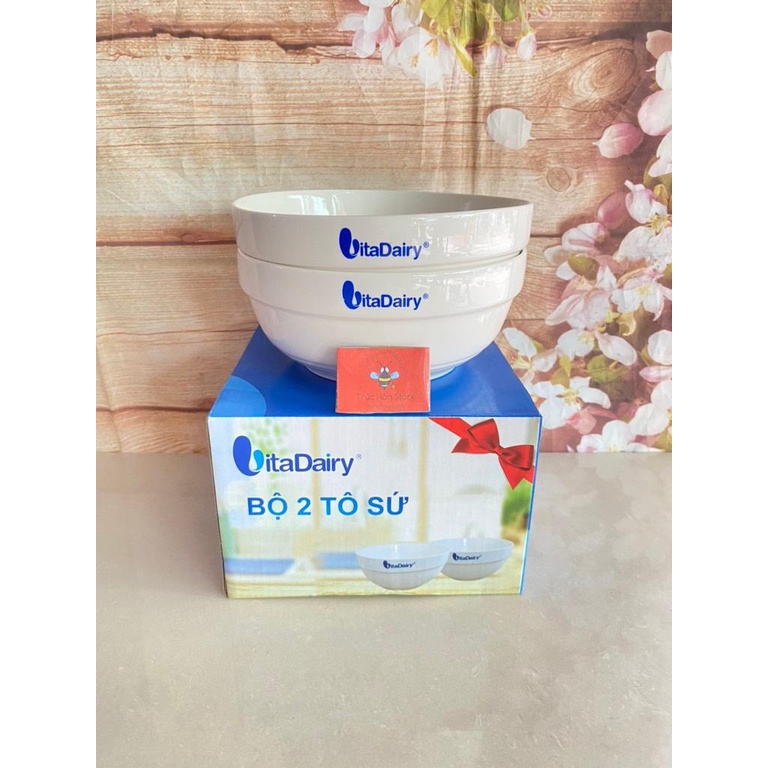 Bộ 2 tô sứ trắng có ngấn cao cấp hkm Vitadairy 7in - 18cm