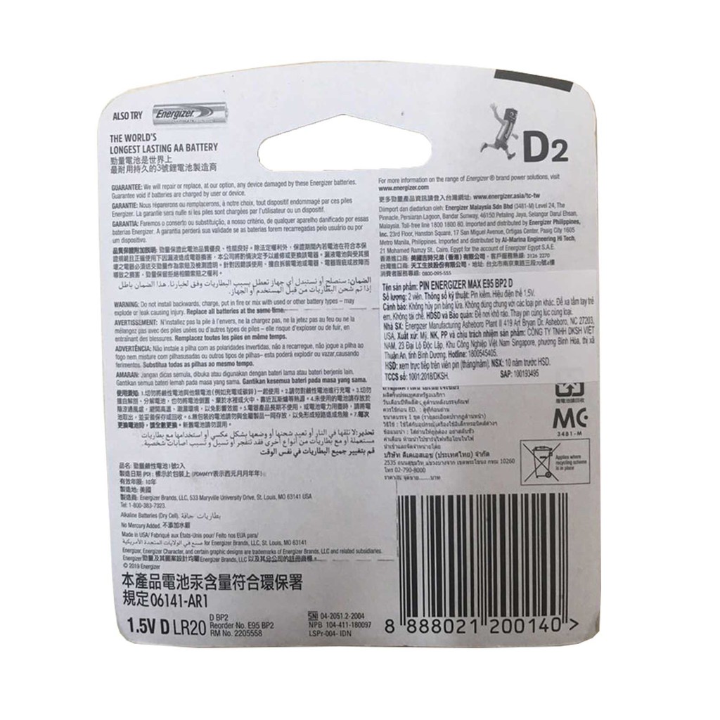 Cameras & Flycam > Phụ kiện máy ảnh > Bộ sạc pin || 2 vỉ pin Energizer Đại D alkaline E95Còn hàng