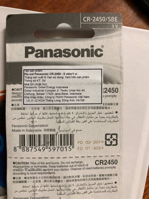 Pin CR2450 Panasonic chính hãng , Sản xuất tại Indonesia Hoá đơn VAT đầy đủ , Phân phối chính hãng bởi CTY TNHH panasonic Việt NamGiá SX