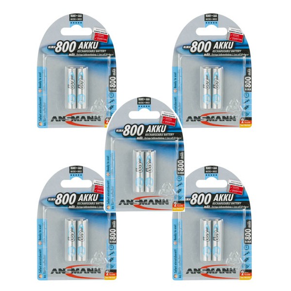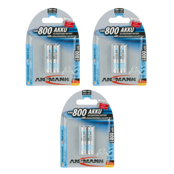 Pin sạc AAA Ansmann 800mAh (1 vỉ 2 viên) Nhằm tiết kiệm chi phí và thay thế cho những loại pin AAA chỉ sử dụng một lần, ANSMANN AG (GERMANY) đã cho ra đời loại pin sạc AAA Ansmann dung lượng lên đến 800mAh cho thời gian sử dụng lâu hơn.Pin sạc AAA hay còn có cái tên khác là pin sạc đũa là Pin có tuổi thọ cao, thời gian chờ kéo dài và bạn có thể nạp năng lượng cho pin bằng sạc của Ansmann hoặc các loại sạc tương thích khác. Tương thích với nhiều dòng máy ảnh, đèn flash, điều khiển, đồng hồ treo tường, chuột không dây và các đồ điện tử dùng pin AAA khác, pin sạc AAA Ansmann chính là lựa chọn xứng đáng dành cho bạn.