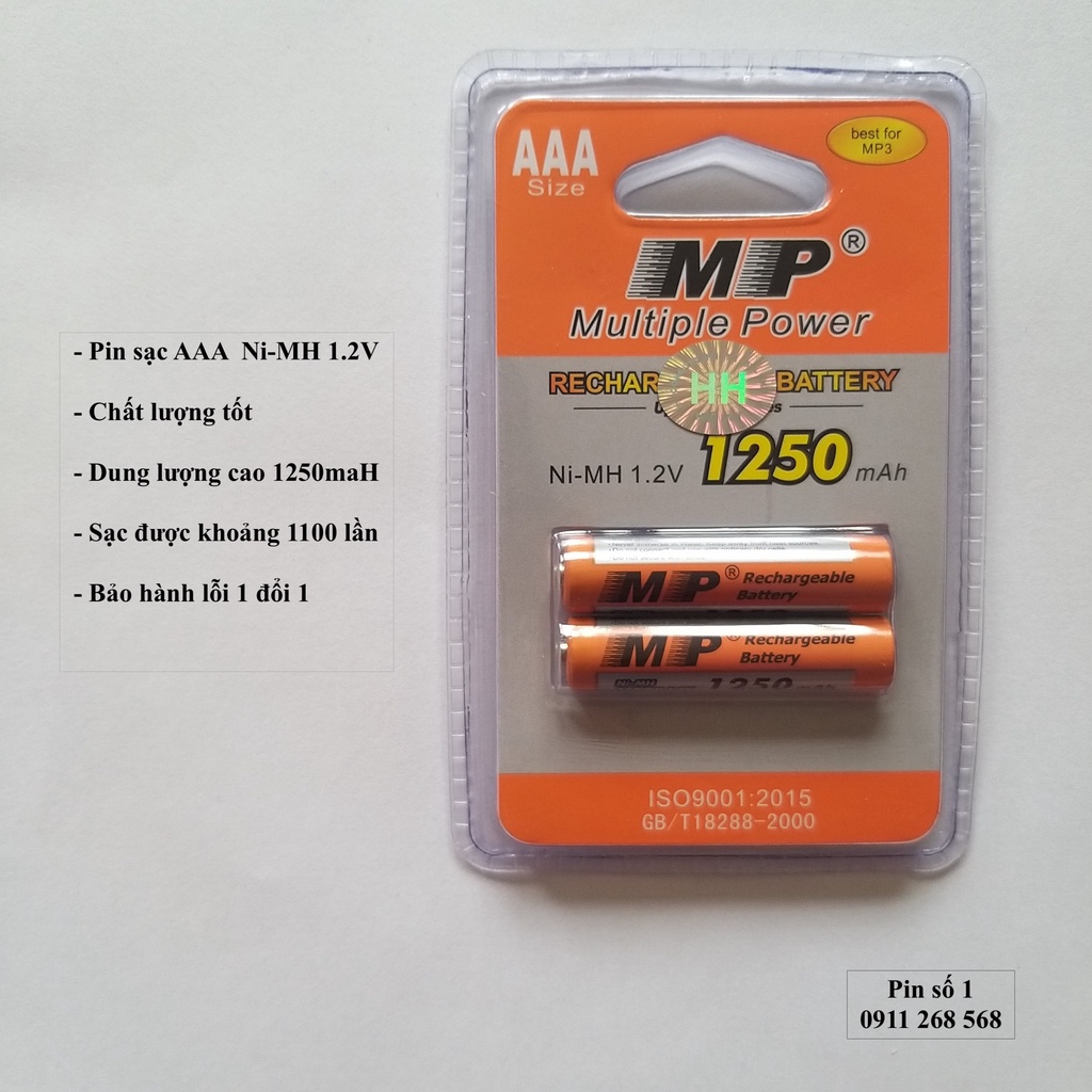 2 viên Pin sạc đũa AAA MP dung lượng cao 1250 maH