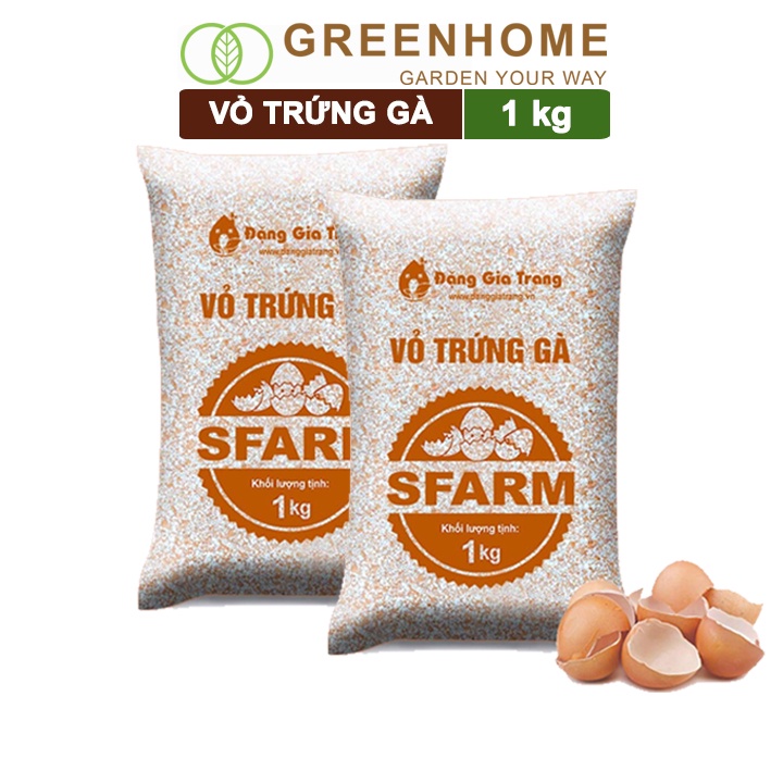 Giới thiệu Bộ 2 Vỏ trứng gà Sfarm đã qua xử lý Bao 1kg. Giúp cây khoẻ, chống côn trùng, sâu bọ |Greenhome