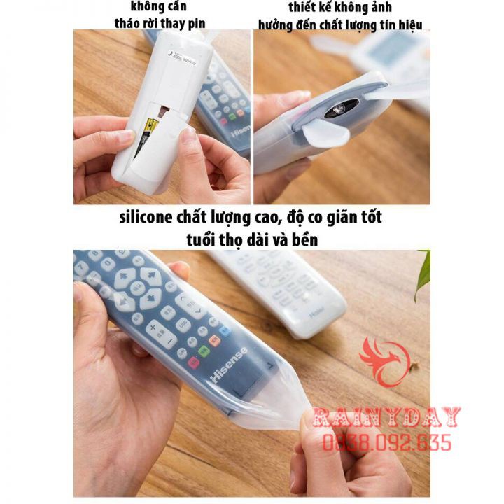 • Vỏ nhựa mềm ôm gọn điều khiển, dễ cầm, bảo vệ điều khiển ti vi, đầu DVD, điều hòa khỏi bụi bặm, ẩm mốc, và bị mờ chữ.
